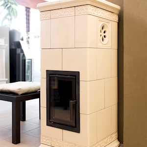 Kaflowo - ceramiczny piec wolnostojący z wymiennikiem wodnym.